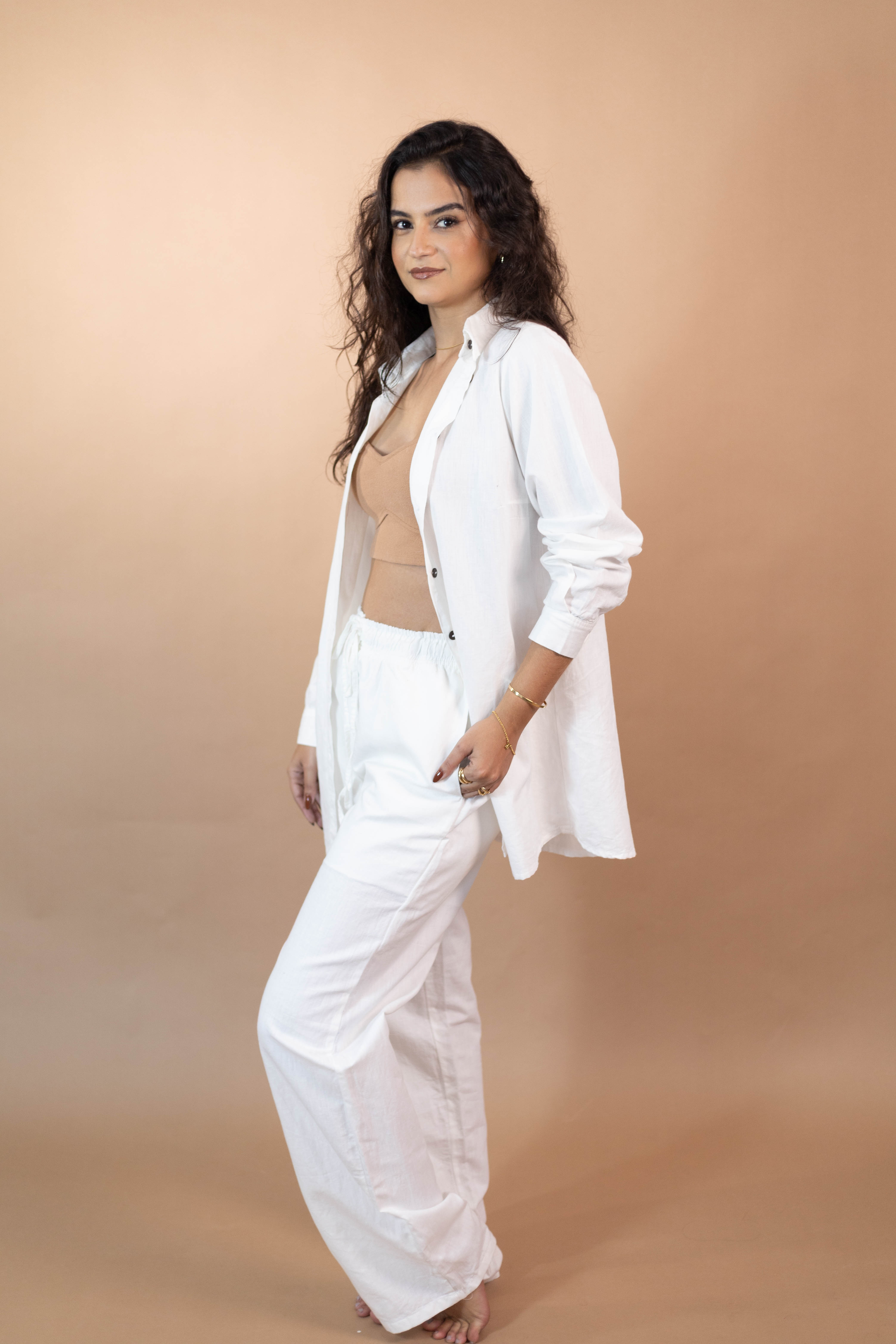 Nossa calça de elástico com cintura ajustável: confortável, prática e linda! A Rita tem elástico e cadarço de verdade, pra você usar alta ou baixa, do jeitinho que preferir. O corte é reto, com bolsos faca na frente e bolsos embutidos atrás, no estilo alfaiataria. Uma peça que vai do look relax ao elegante sem esforço. Também disponível no jeans e no cru.