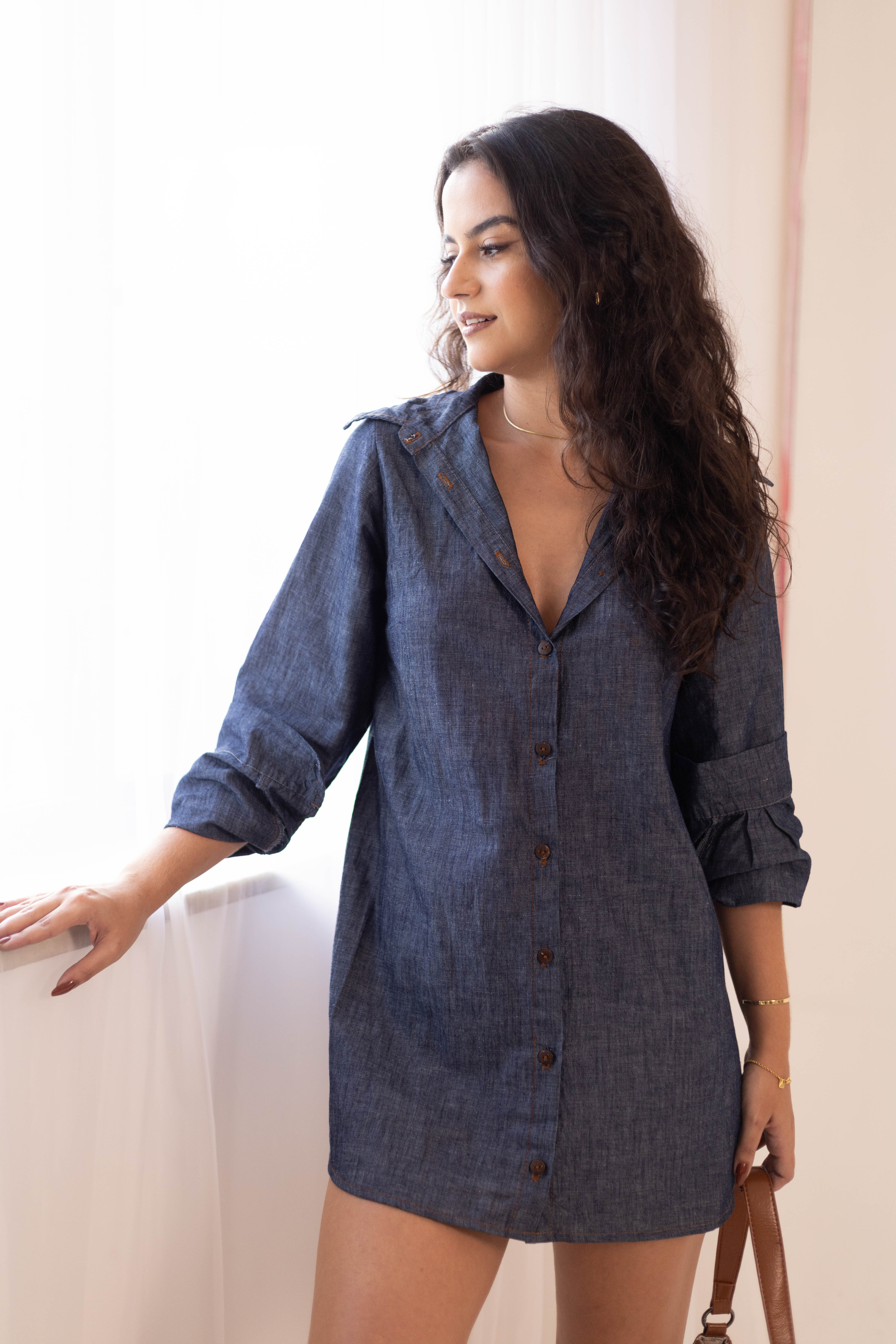 A Maisa é a queridinha de quem ama versatilidade. Com comprimento alongado e modelagem ampla, ela pode ser usada como camisa tradicional, terceira peça ou até como vestido, depende do seu mood. Disponível em jeans e cru, ela tem recortes no busto e nas costas que garantem um caimento bonito, mesmo sendo larguinha. O tecido é o nosso blend de cânhamo, com toque natural e fresco. E os botões? São de fibra de coco, naturais e sustentáveis 🤎